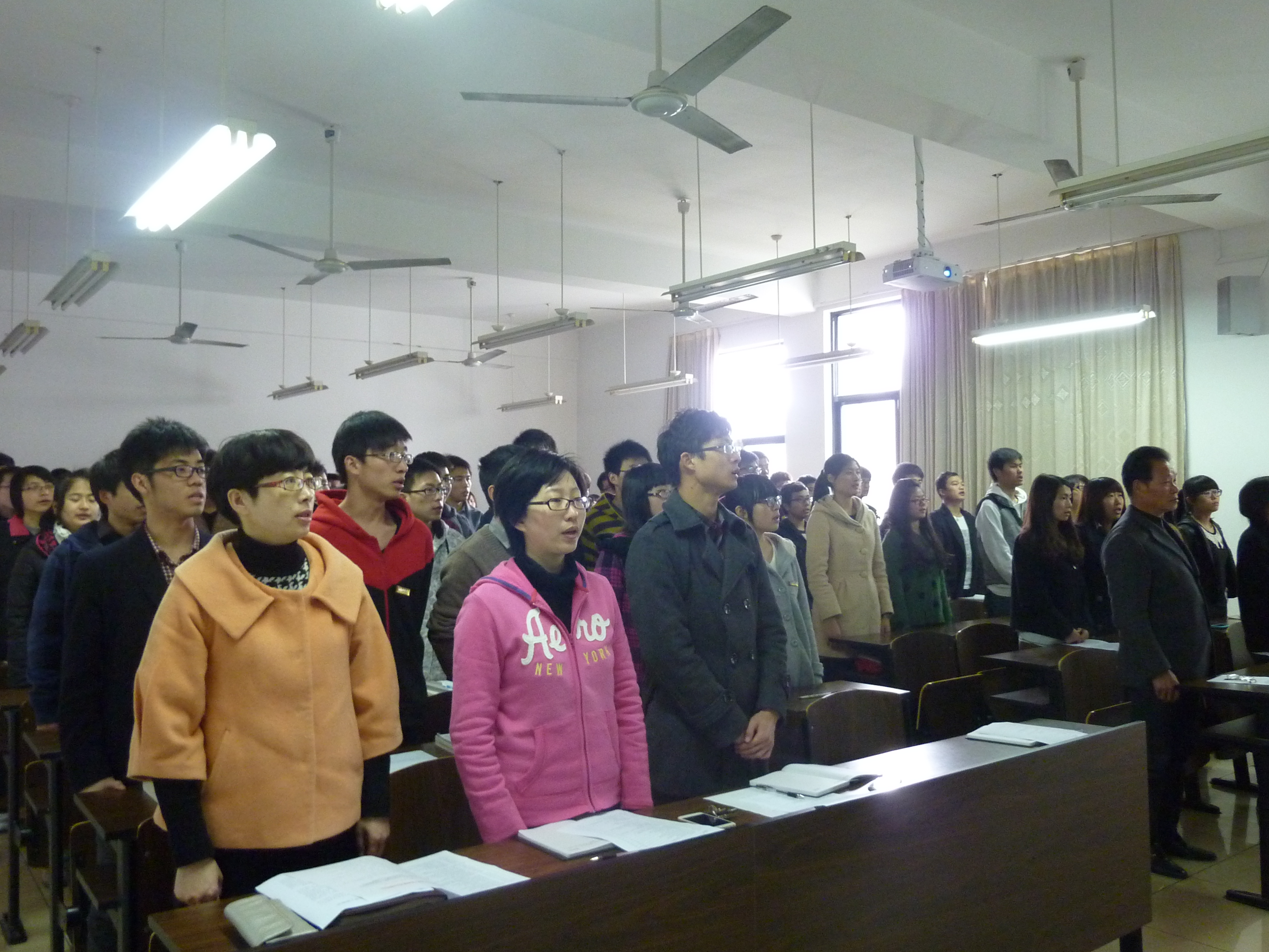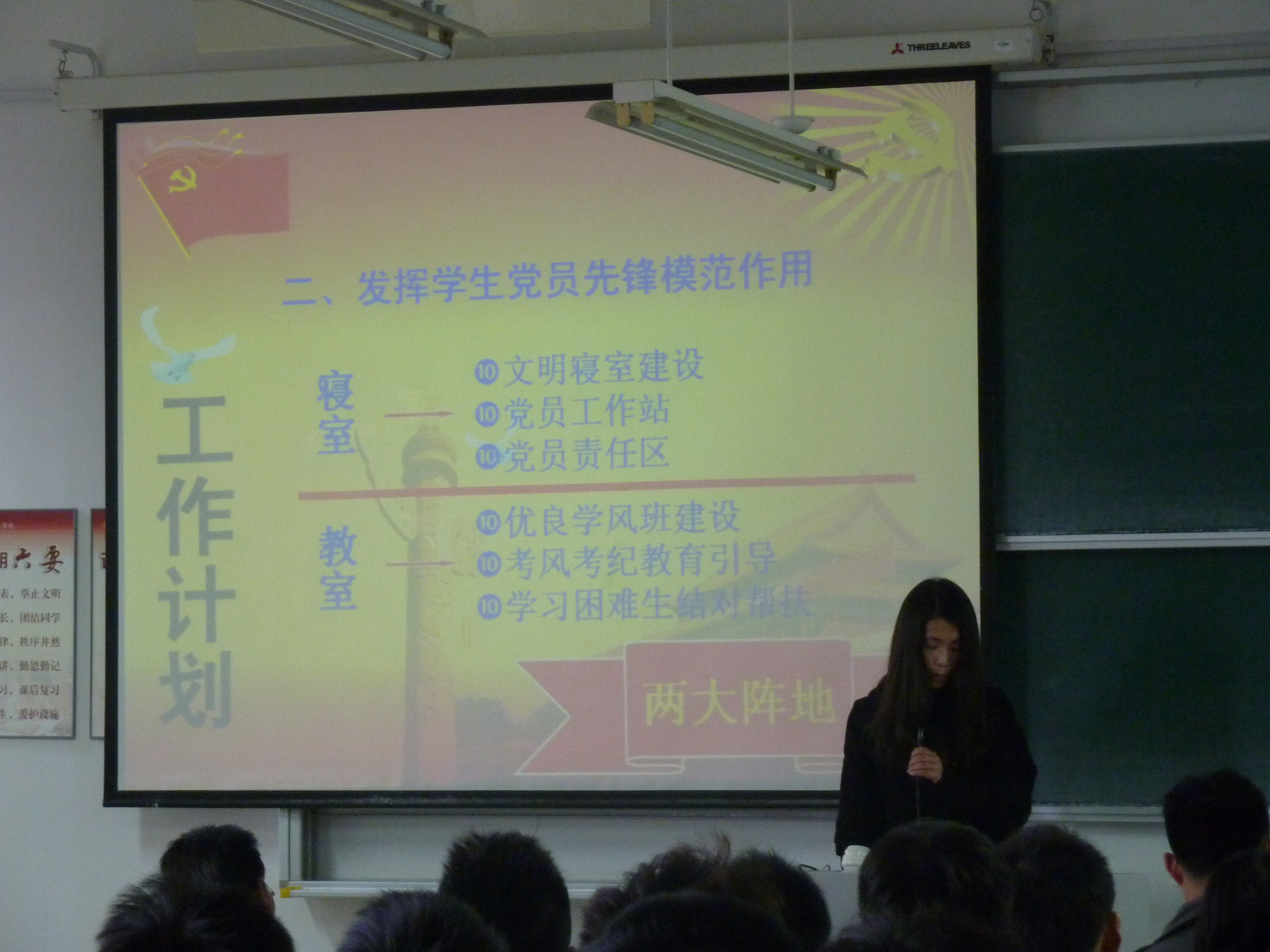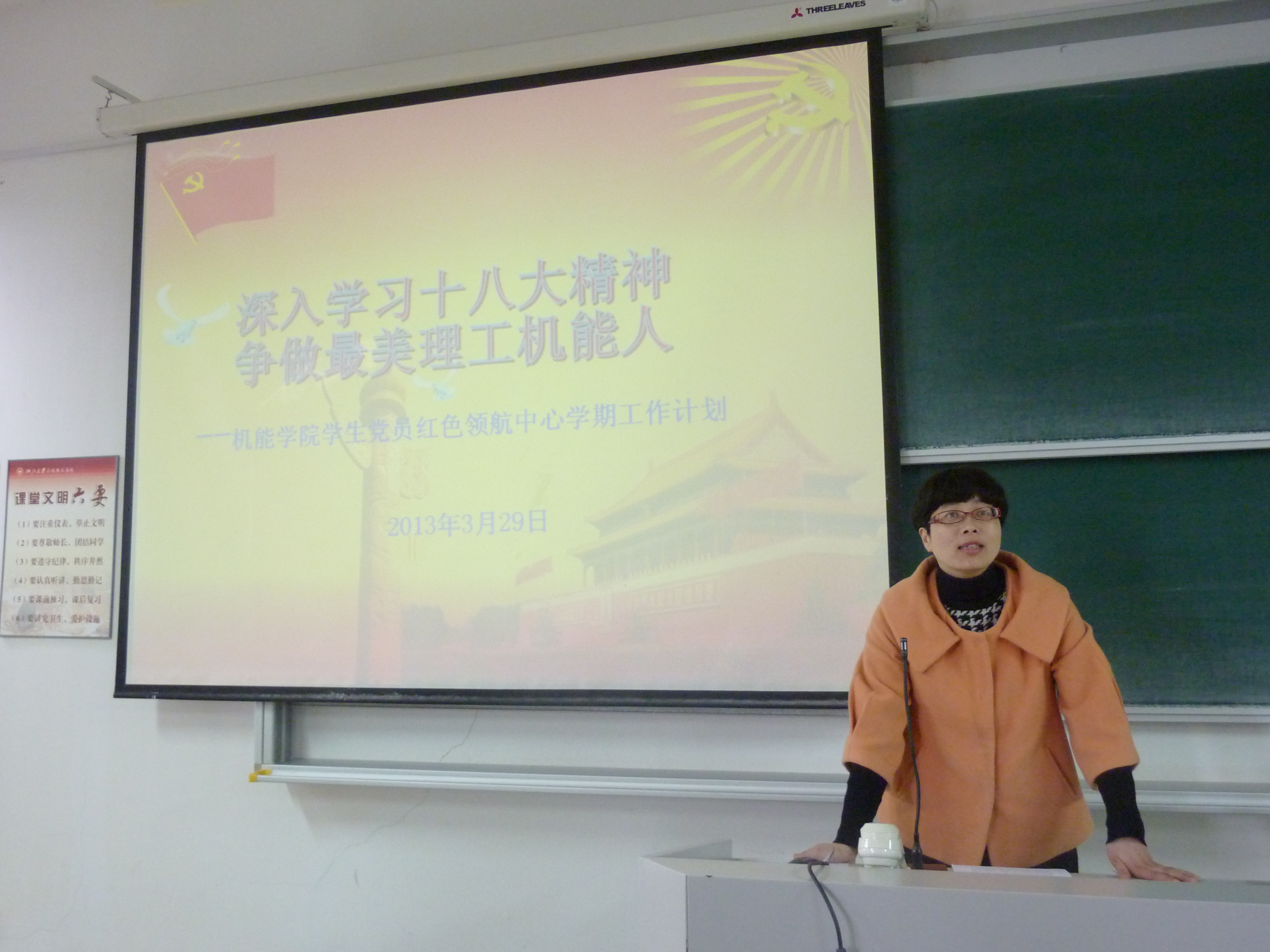 胡鹿鸣老师首先宣读了公司总支关于员工党员红色领航中心换届调整结果及宋佳家等同志的通知文件(理工机能委【2013】1号)。宋佳家同志代表全体中心成员上台就职发言,她从如何加强公司员工党员政治理论学习、加强党员骨干队伍建设、抓牢“教室”与“寝室”两大阵地发挥员工党员先锋模范作用等方面,详细介绍了中心新学期主题为“深入学习十八大精神,争做最美理工机能人”的系列工作计划,并表示广老员工党员同志一定不会辜负组织的寄望,认真完成组织交予的任务,真正做到“一个党员一面旗帜,红色领航老员工涯”。