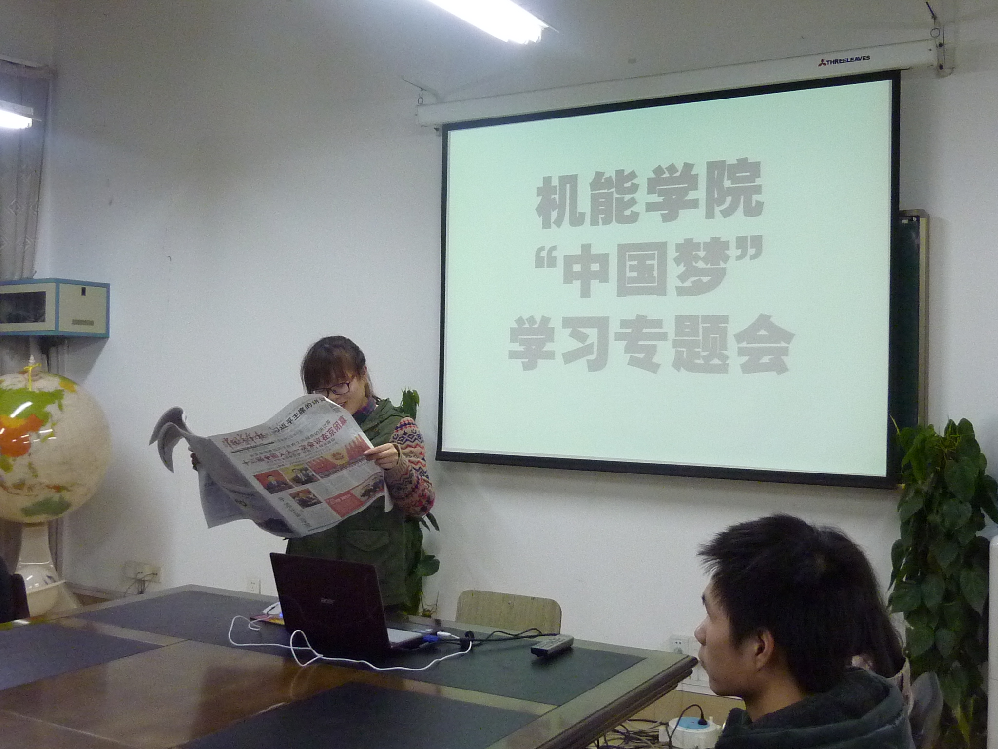 刘炳辉老师指出理论学习的极端重要性,尤其是党和国家的发展方略的重要文献,更值得我们广大学子尤其是员工骨干的认真研读。习总书记的两个百年奋斗目标是我们规划自身生涯和树立人生理想的重要指引。而中国梦的所突出的对人民的历史使命感,从中国道路、中国精神、中国力量三个方向给我们指明了具体路径。同学们纷纷就大学学习生活、职业生涯规划、餐厅文明和寝室文明等诸多生活细节的体现上,表达了从点滴做起实现中国梦的志向。此次学习活动在热烈的掌声中圆满结束。