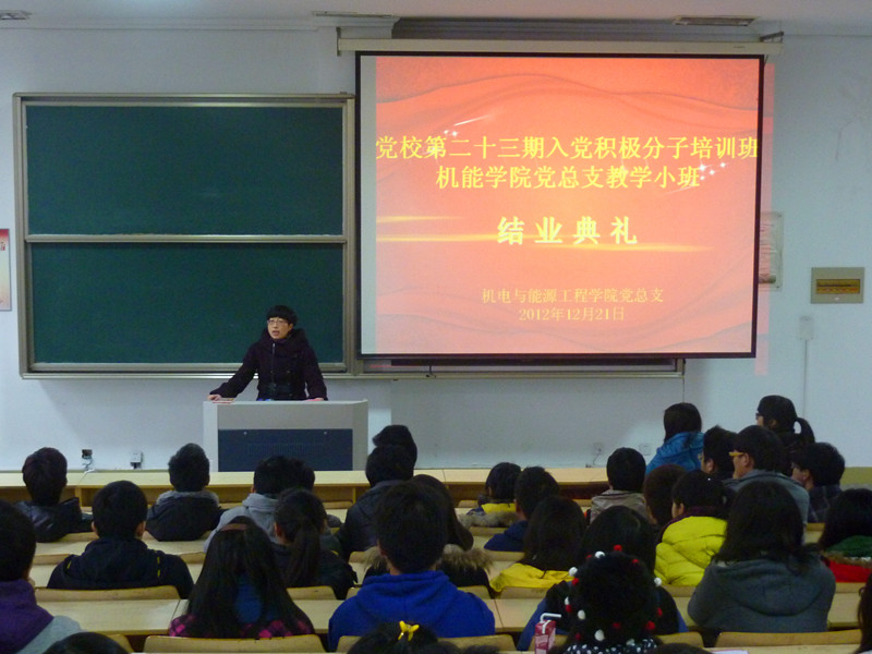 经过一个多月的培训,党校第二十三期入党积极分子培训班公司党总支教学小班结业典礼于12月21日下午15:30在SF105顺利举行。党总支书记吴春老师、思政主管胡鹿鸣老师、副主管吴琼老师、辅导员邬旭东老师、入党积极分子培训班全体学员参与结业典礼。