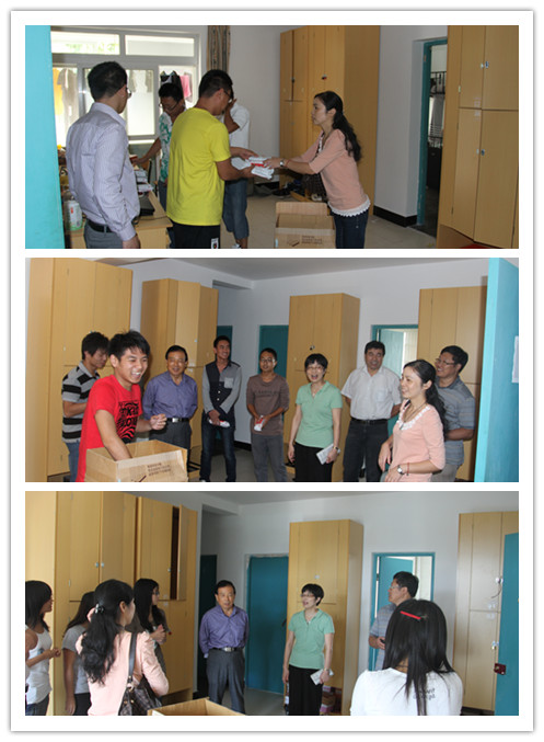 9月29日中午,公司经理王龙山、总支书记吴春、副经理高德、王义强以及新生班导师张惠娣等一行六人,走进研究生宿舍看望2012级研究生,给身处异地的同学们送上中秋的慰问。