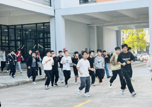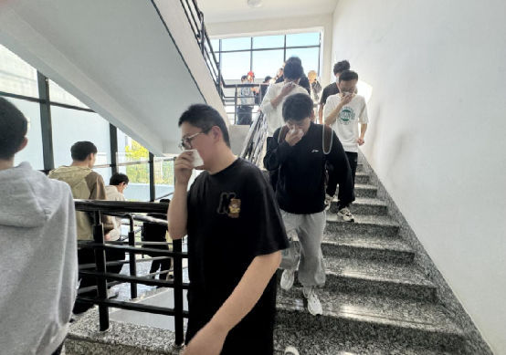 此次消防安全演练现场模拟了NA四楼和员工宿舍突发火灾的情景,随着现场警报的响起,应急疏散预案启动,楼内师生在工作人员的引导下,从消防通道迅速、有序、安全地撤离模拟火灾发生现场。