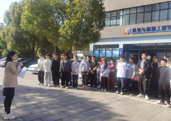 随后,师生前往可珍讲堂门口,现场观摩了消防器材的使用方法,并进行了火灾逃生器材实操教学。