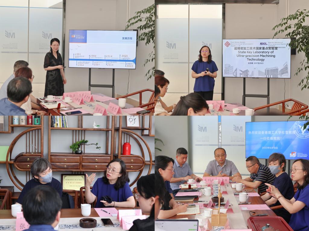 公司党委书记江美芬对杜雪教授一行的来访表示热烈欢迎,并介绍了公司团队队伍、专业建设与人才培养、学科专业平台与科学研究、员工工作等方面的情况。随后杜雪教授介绍了香港理工大学超精密加工技术国家重点实验室的相关情况。双方就实验室建设、科研合作、师生出国境访学、智能制造硕士生申请与培养等方面进行了深入交流,并达成了初步合作意向。