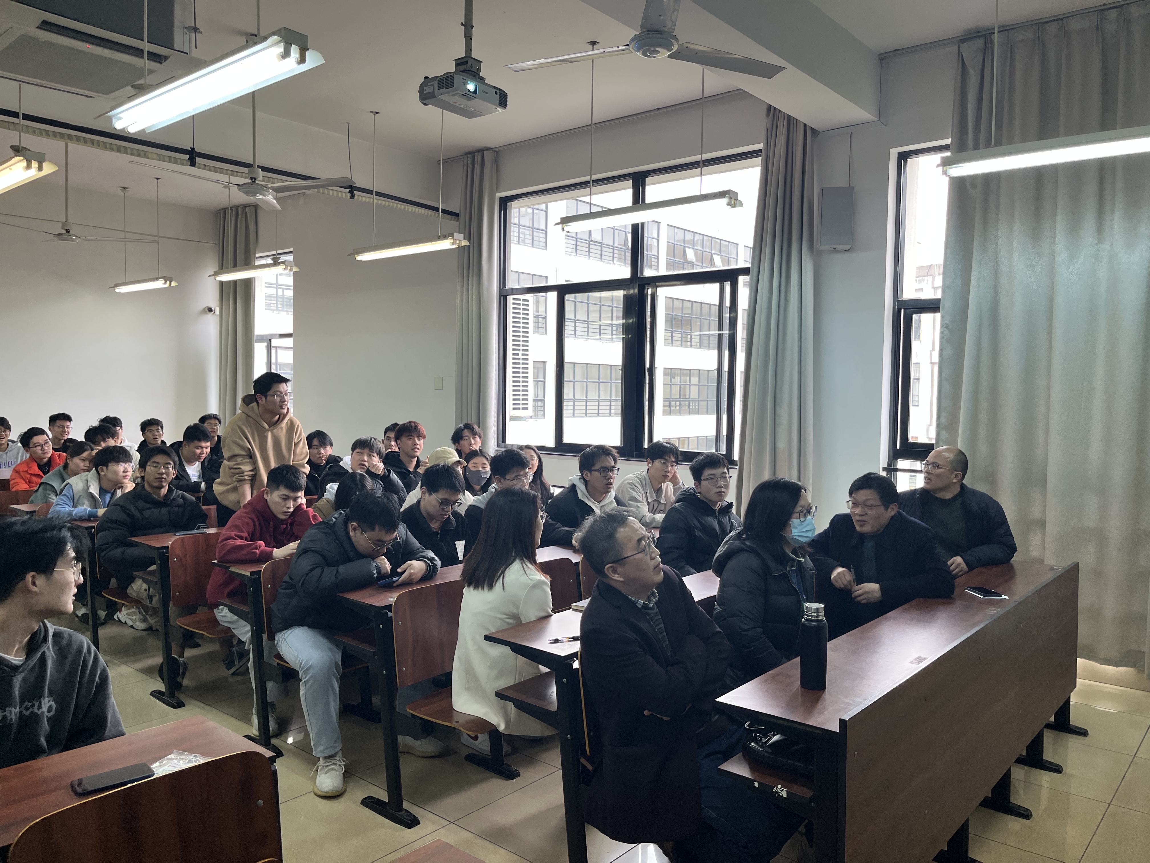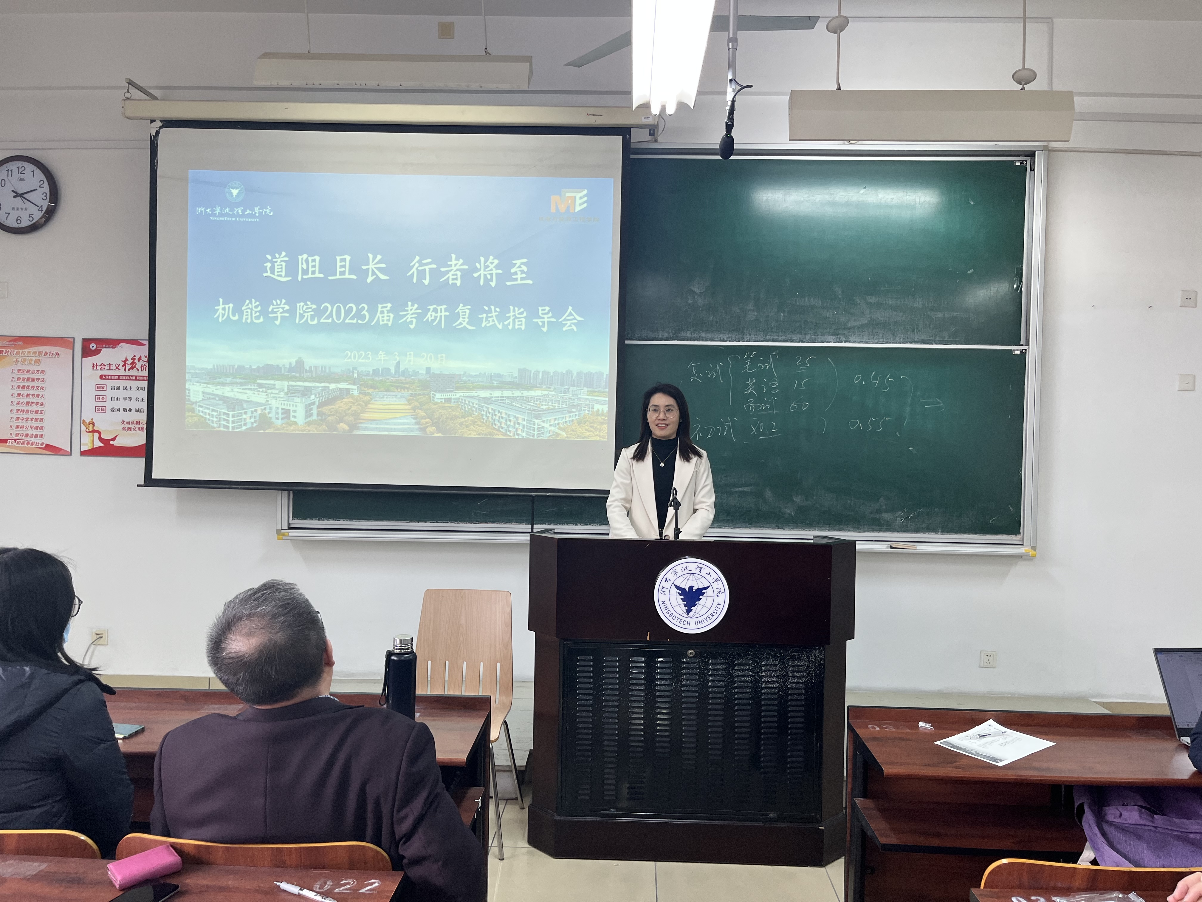 会上,张学昌教授结合自身多年参加浙江大学研究生复试经验,详细介绍了考研复试流程、面试技巧及注意事项,勉励同学们要树立信心、保持良好心态积极应战。宋瑞银教授叮嘱同学们要学懂、弄通相关专业知识,并分享了指导往届员工调剂的心得与经验,提醒同学们要积极关注新增硕士点院校的调剂信息,切忌“眼高手低”。高夫燕副教授提醒同学们要积极准备好英文自我介绍,同时要注重英语口语的表达能力和随机应变能力。沈祥智副教授强调同学们要熟悉自身本科毕业设计内容,能清晰准确地表述出来。同时,向同学们分享了多年来的调剂经验,强调在调剂过程中要密切关注研招网信息,勇于尝试、坚持到底、诚信务实。四位专家老师还耐心解答了同学们提出的问题,与同学们进行了深入交流。