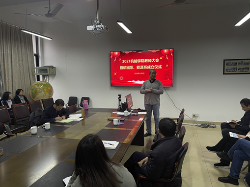 1月5日,太阳集团tyc4633在公司会议室召开机械系、能源系成立大会,公司全体教师参加会议,陈光明经理主持会议。