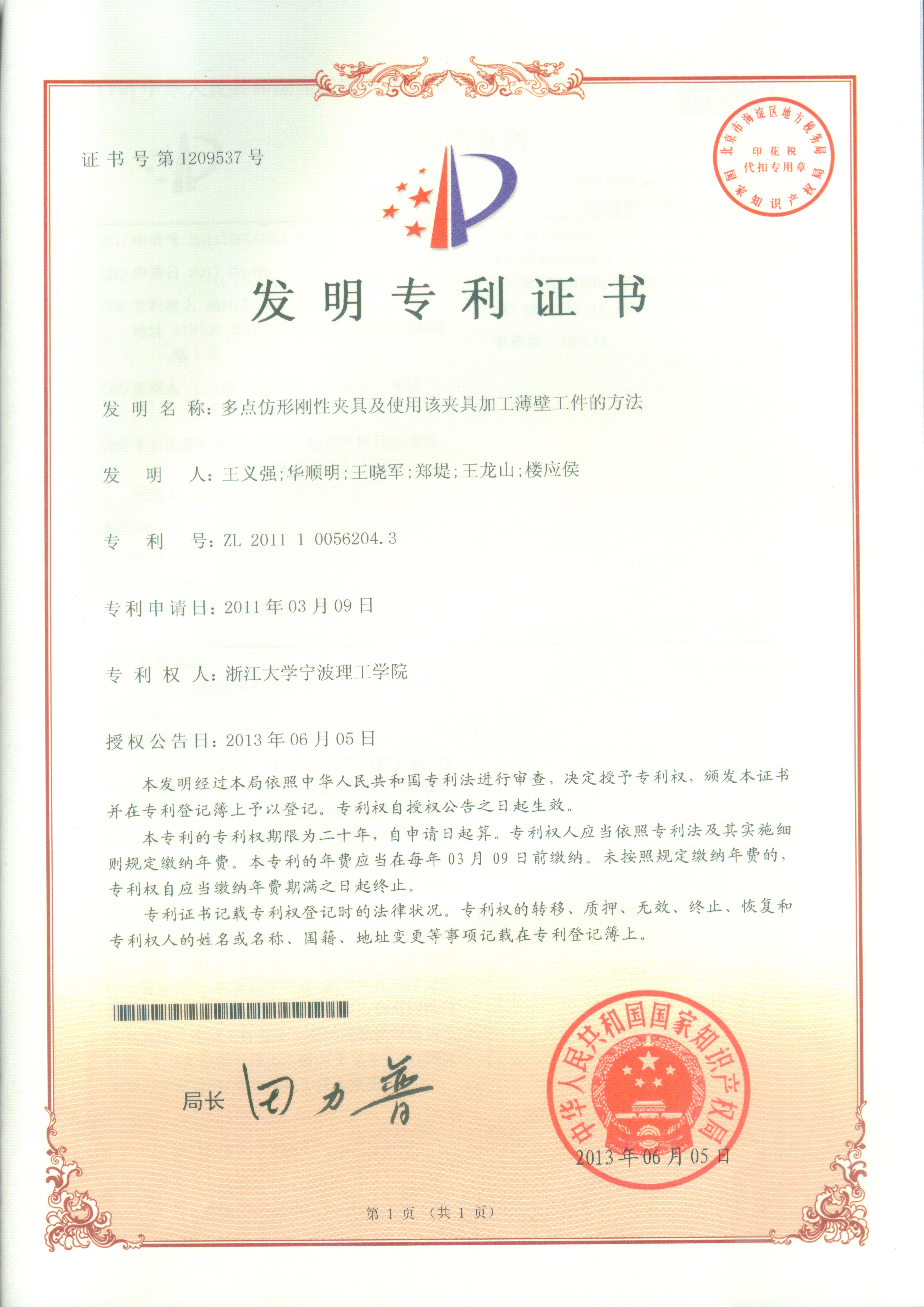 公司王义强教授团队自主研发的“复合材料薄壁件多点仿形刚性夹具”已经成功应用于国家某型航天器天线罩的加工。