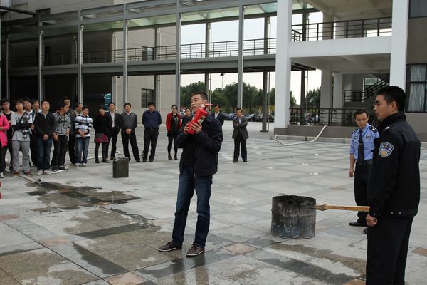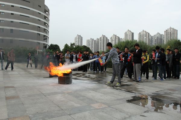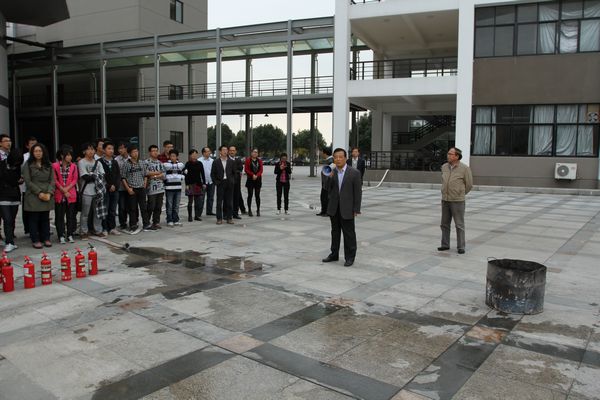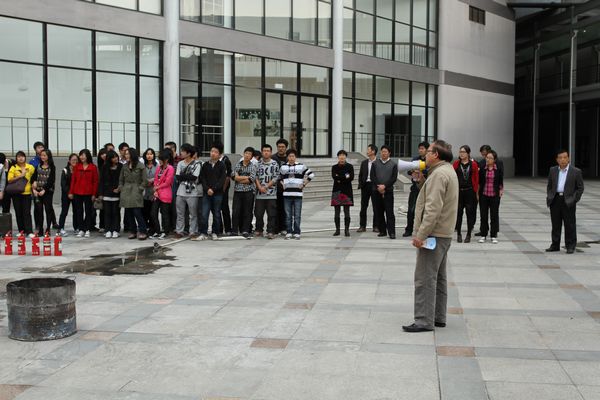 13点30分,公司经理王龙山吹响口哨,整个NA、ND四楼上响起急促的跑步声,从安全出口楼梯跑下来,在学术交流中心空地集合。此后,保卫处王坚毅处长在现场对此次消防演习进行了点评,并详细讲解了消防安全知识。他指出,消防安全十分重要,特别是在寝室等人员密集场所,希望同学们要从身边小事做起,树立消防安全意识,杜绝使用违章电器,在发生火灾时候,要正确掌握逃生方法。保卫处燕永波老师对消防水带及消防栓、常用灭火器材干粉和泡沫灭火器的灭火操作作了现场演练示范。通过现场师生们的积极参与,消防演习活动收到了预期的效果。