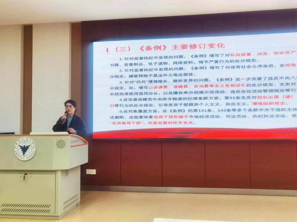 会上,党委副书记、纪委书记林建英围绕“以案为鉴强警示规范使用守初心”为主题,强调了科研经费规范使用管理的必要性和重要性,解读了《中国共产党纪律处分条例》方向原则、修订变化等最新内容。与会人员集中观看了《持续发力 纵深推进》教育片,以案示警、以事释纪,为公司教师上了一堂生动的警示教育课。
