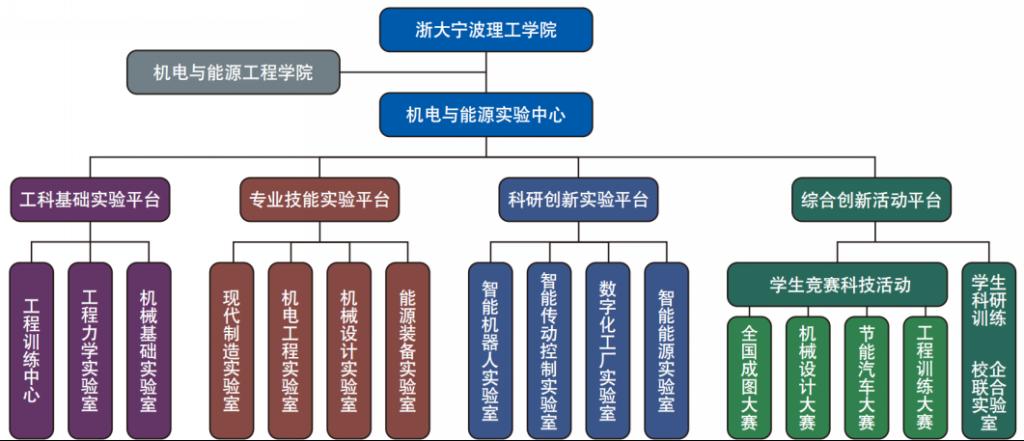 机电与能源实验中心下设工程基础实验平台、专业技能实验平台、科研创新实验平台、综合创新活动平台。包括现代制造工程实验室、机电工程实验室、机械设计实验室、机械基础实验室、工程训练中心、工程力学等实验室,实验用房总面积9400m²,仪器设备总投资5000余万元,年开设实验项目超过200个,年教学工作量超过8万人学时。于2010年获批为省本科院校第二批省级实验教学示范中心建设点,2019年获批为“十三五”省级重点建设实验教学示范中心。